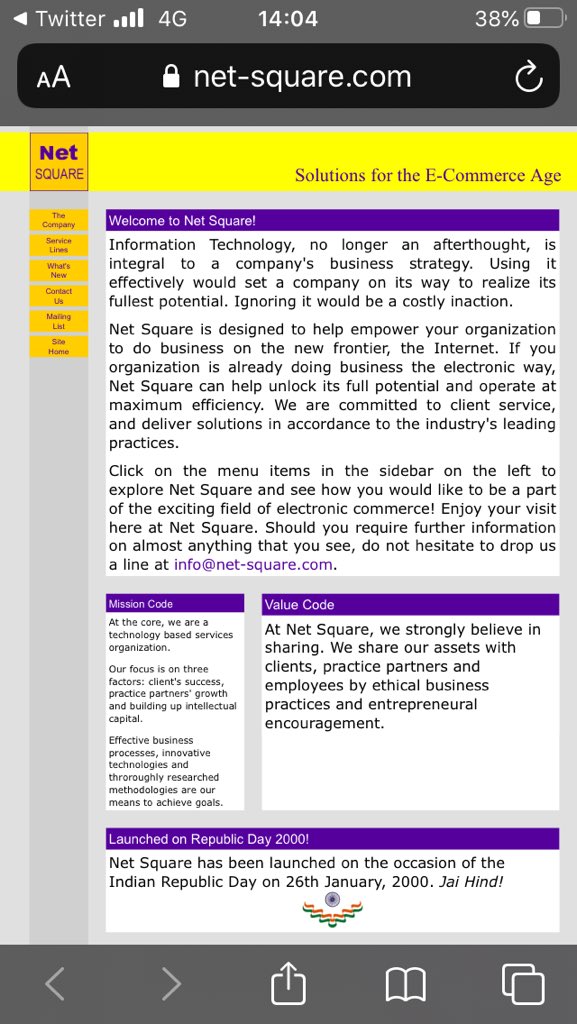 Net Square’s website was launched by me 20 years ago on the 61st