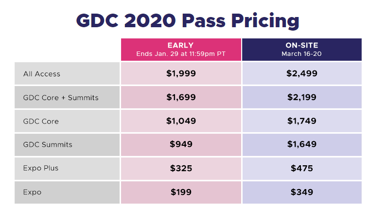 Man oh man these GDC ticket prices. I don't usually know if I can go until around February. "Early" prices are last year's normal, and it was cheaper the year before that. Pure San Francisco crap right here.pic.twitter.com/Y2in1BAU3g