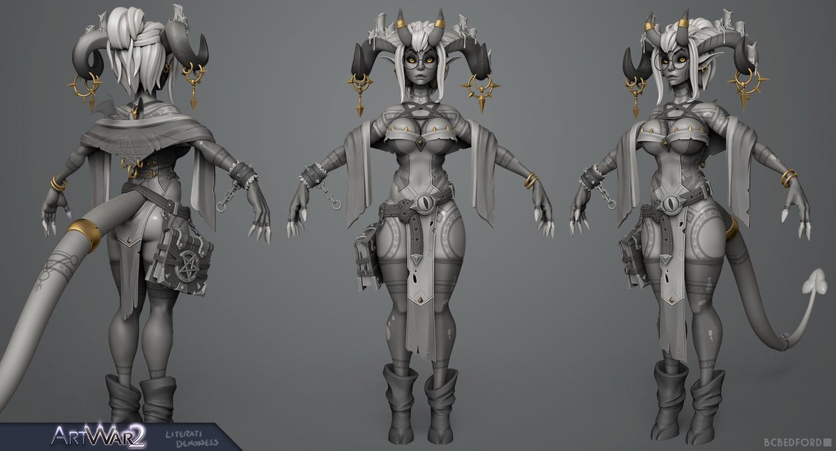 Likely the last update on my #ArtWar2 entry until the final - I am beyond excited now with her so close to done. I'm really looking forward to seeing all the other finished projects too! 📕😈 #gameart #wip #polycount #Cubebrush http://tinyurl.com/y8gac3pt pic.twitter.com/PWPrwGIWAY
