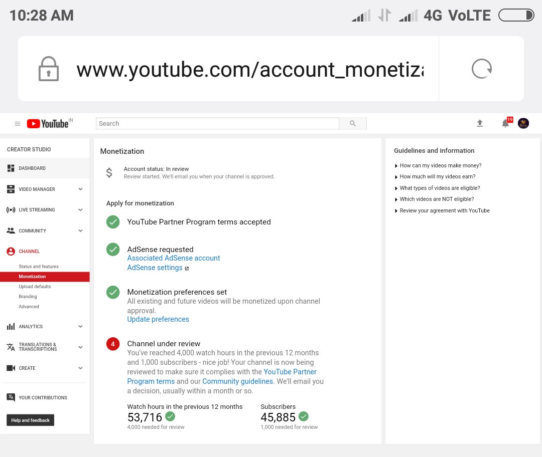 Waiting for monetization approval from more then 45+ days! Please review my application ASAP. I'm loosing daily 200k+ views without any revenue. Please help. Thankspic.twitter.com/UUqLXkRRL8