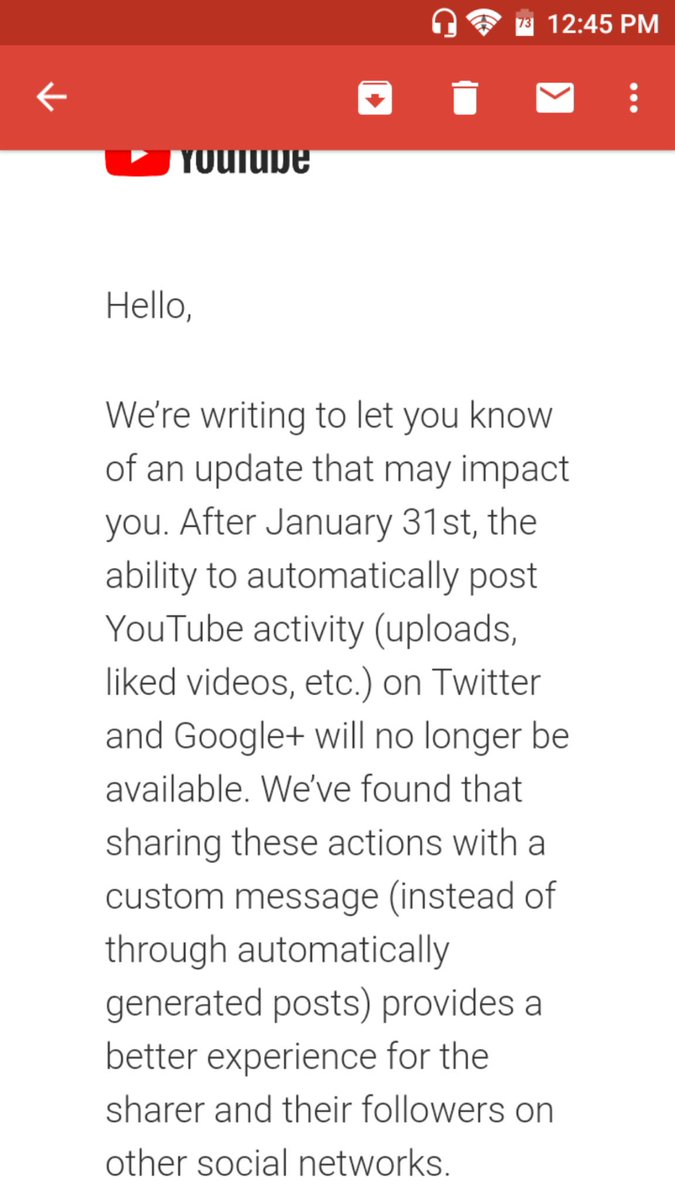 @TeamYouTube I get it, but I don't understand removing it. I see it more as a convenience that it automatically posts your uploads/likes/etc. I'm 99% sure YouTubers would probably rather prefer it be done automatically. Would get hectic if a creator uploads like 5 vids a day.pic.twitter.com/da15oxjniz
