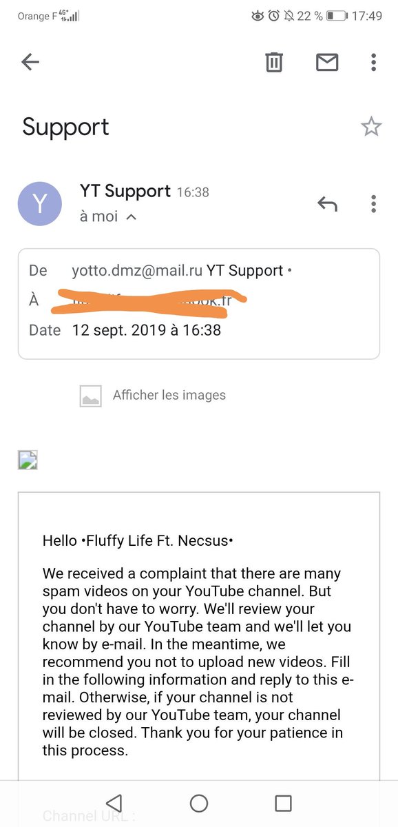 Bonjour @TeamYouTube, savez vous pour depuis hier je me fais spam par cet e-mail qui de plus ne m'as pas l'air d'être votre email officielle ? Le saviez vous p ? Je vous remerciepic.twitter.com/1bUp0l9O0M