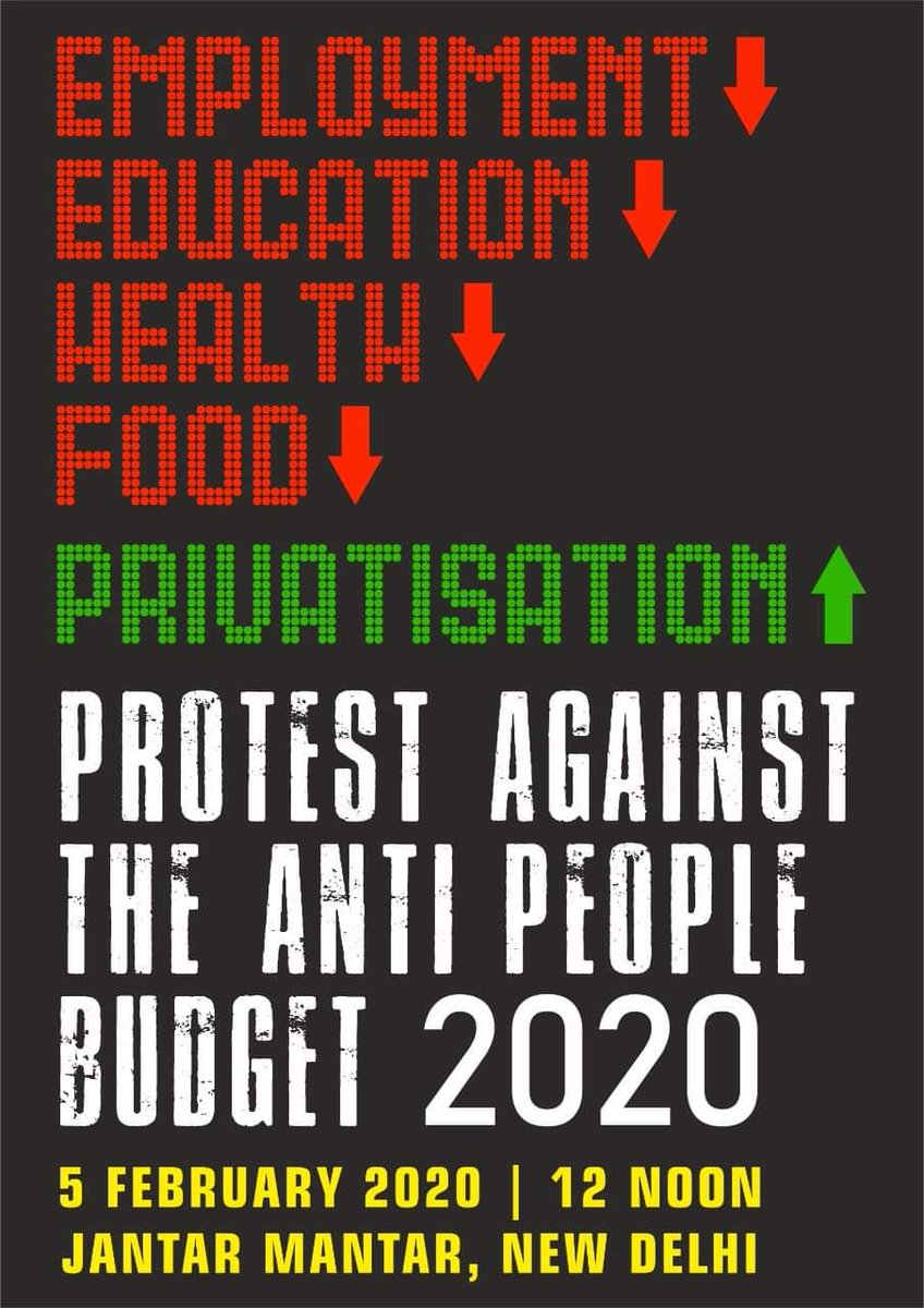 #Budget at Jantar Mantar on February 5, 2020 from 12 noon onwards. Join in large numbers#ChaloJantarMantarFeb5 जन विरोधी बजट के खिलाफ़ चलो जंतर मंतर - फ़रवरी 5, 2020 दोपहर 12 बजे सेpic.twitter.com/pgJqvaz6xx