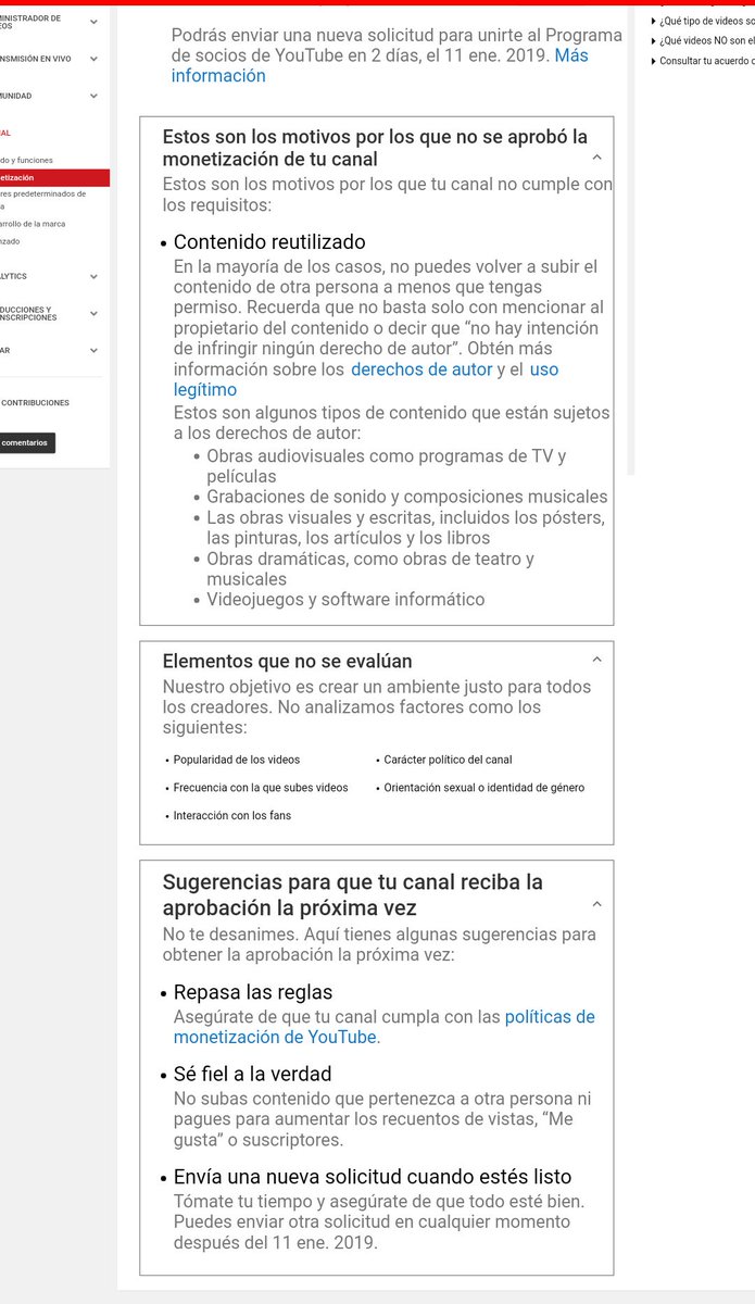 Muchas gracias, de todas maneras ya volvi a solicitar la monetizacion, ojala me acepten ya que cumplo con las politicas de monetizacion y los lineamientos lo que les hagan saber diganmelo por favor, GRACIAS si me aceptan antes les hago saber a ustedes por aqui asi cierran el caso