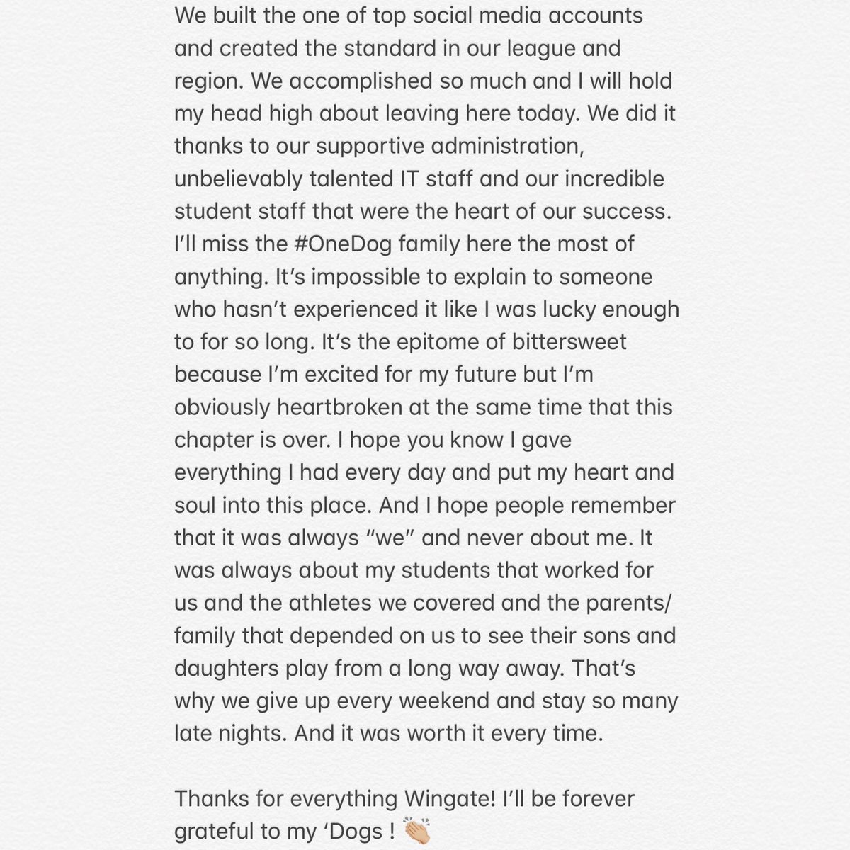 What a honor it was to serve my alma mater for so long. Sad to say goodbye but excited for my next chapter. It was always “For My Dogs” ! #OneDog