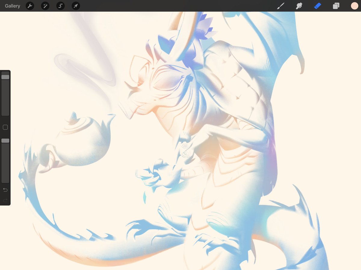 The main shadows are in! I love this part of the process- getting to sculpt shapes and play with soft and hard edges. Set to multiply in context of the base colors (left) and the layer on its own (right)!pic.twitter.com/GXAR0lAJxS