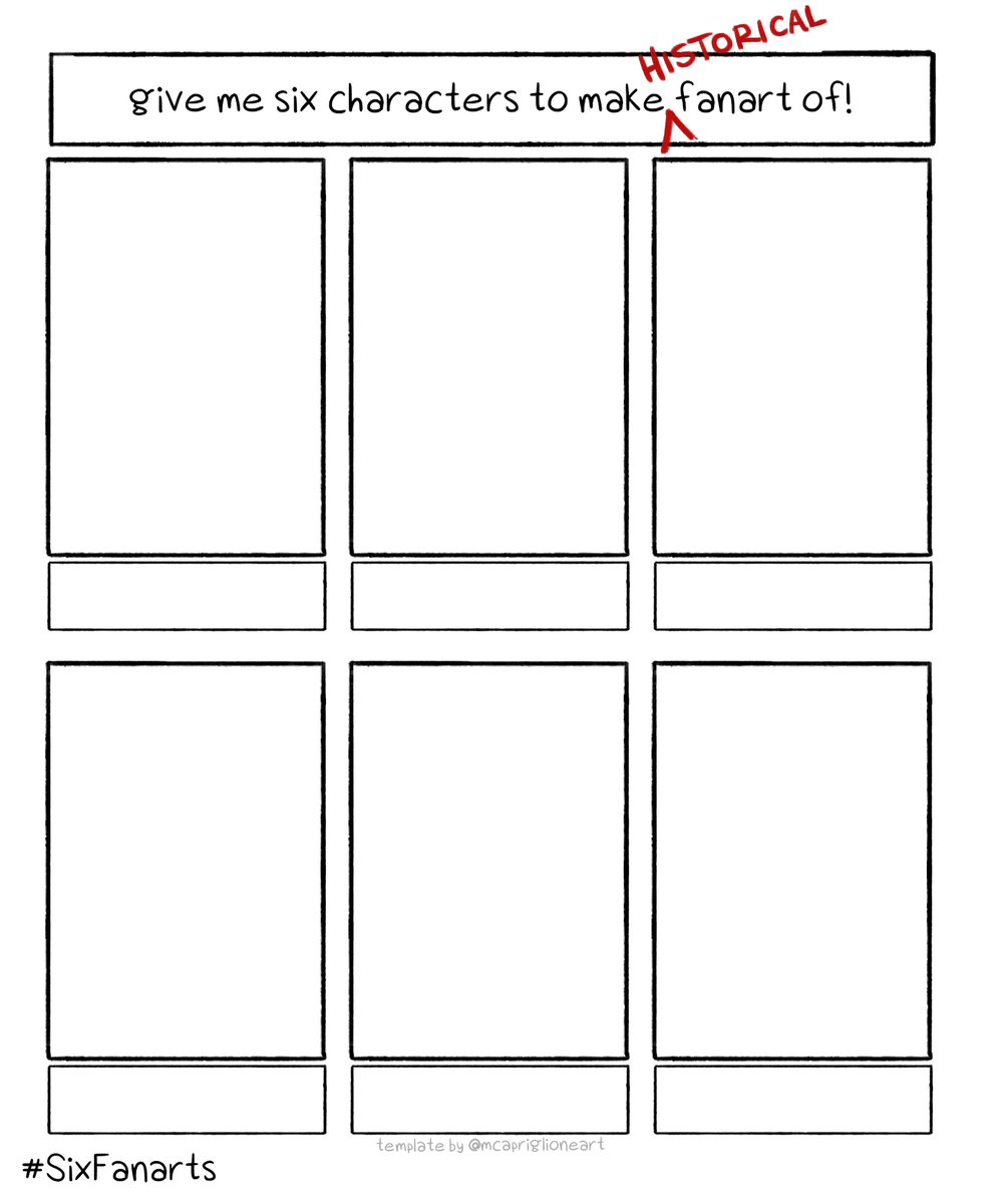 I need some low-pressure prompts for this weekend, so a slight tweak: give me six characters to make ✨historical✨ fanart of! (you're more than welcome to recommend a particular era as well, though it will be taken with a grain of salt if I... hate that era or something)pic.twitter.com/NfKaYS4Mam