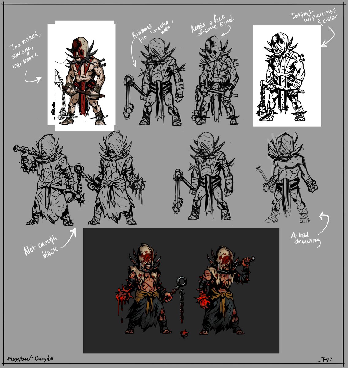 Some development sketches for the Flagellant @DarkestDungeon #crimsoncourt #gamedevpic.twitter.com/6NwzjKbs6c