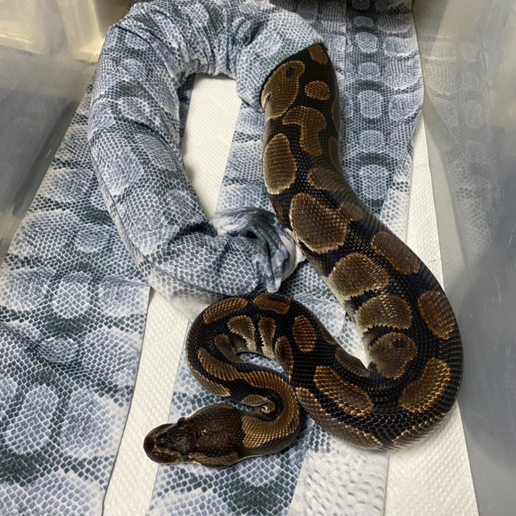 ボールパイソン柄の抜け殻提供ヘビであるヒモちゃんが履いてくれました!!これはめちゃくちゃ可愛すぎますね…