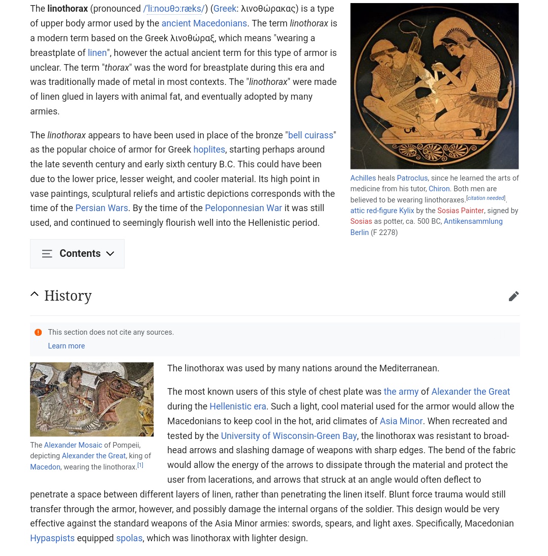 The ancient Macedonians apparently had textile laminate armor, like a primitive sort of Kevlar vest-- https://en.wikipedia.org/wiki/Linothorax https://www.uwgb.edu/aldreteg/Linothorax.html …pic.twitter.com/KRlvj4RJNS