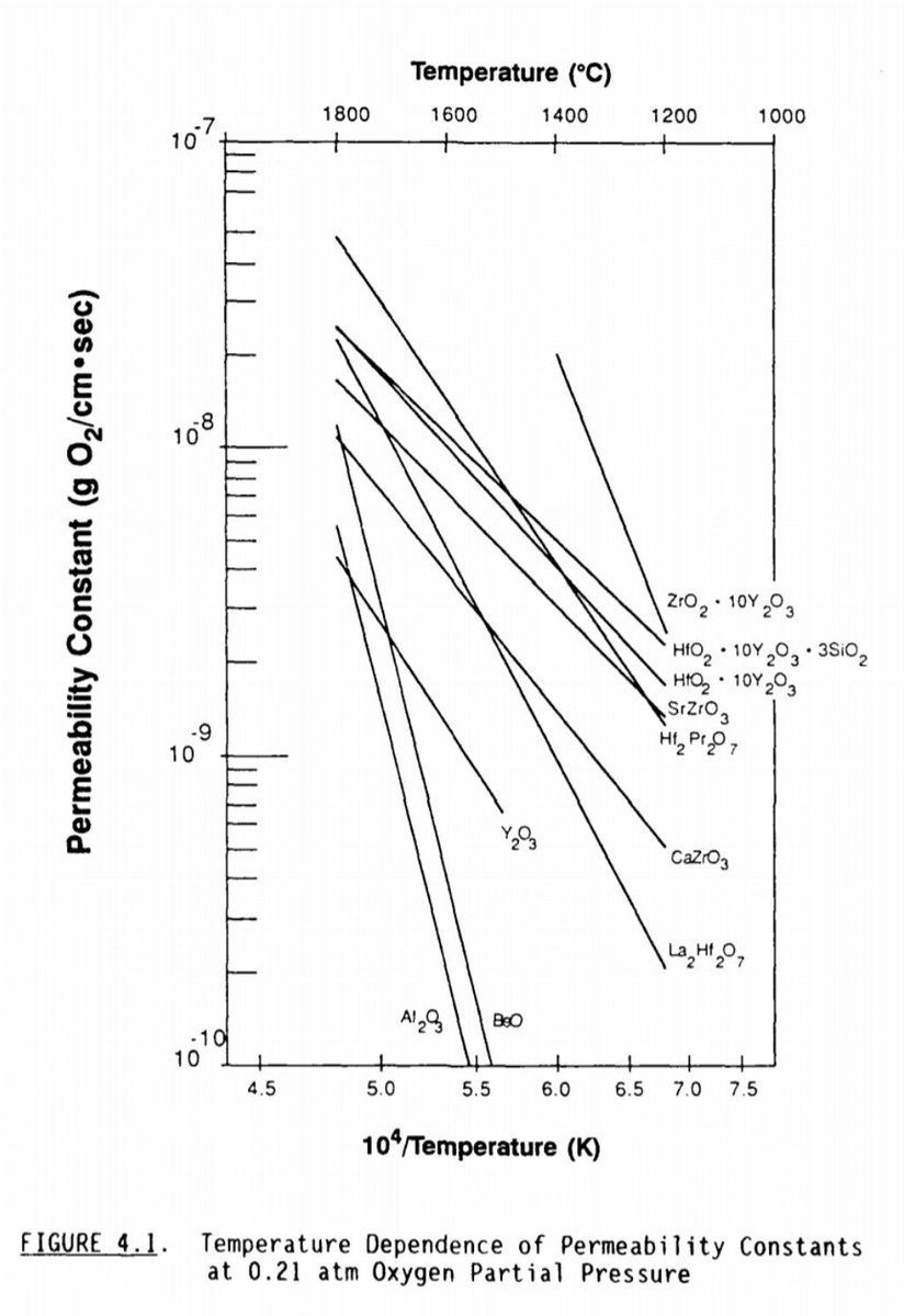 At sufficiently elevated temperatures, oxygen becomes directly permeable through quartz glass, alumina, zirconia, and all other known oxide ceramics, making them increasingly useless as protective shielding for metals-- and conversely useful for solid oxide fuel cells.pic.twitter.com/KxMQhFPmtS