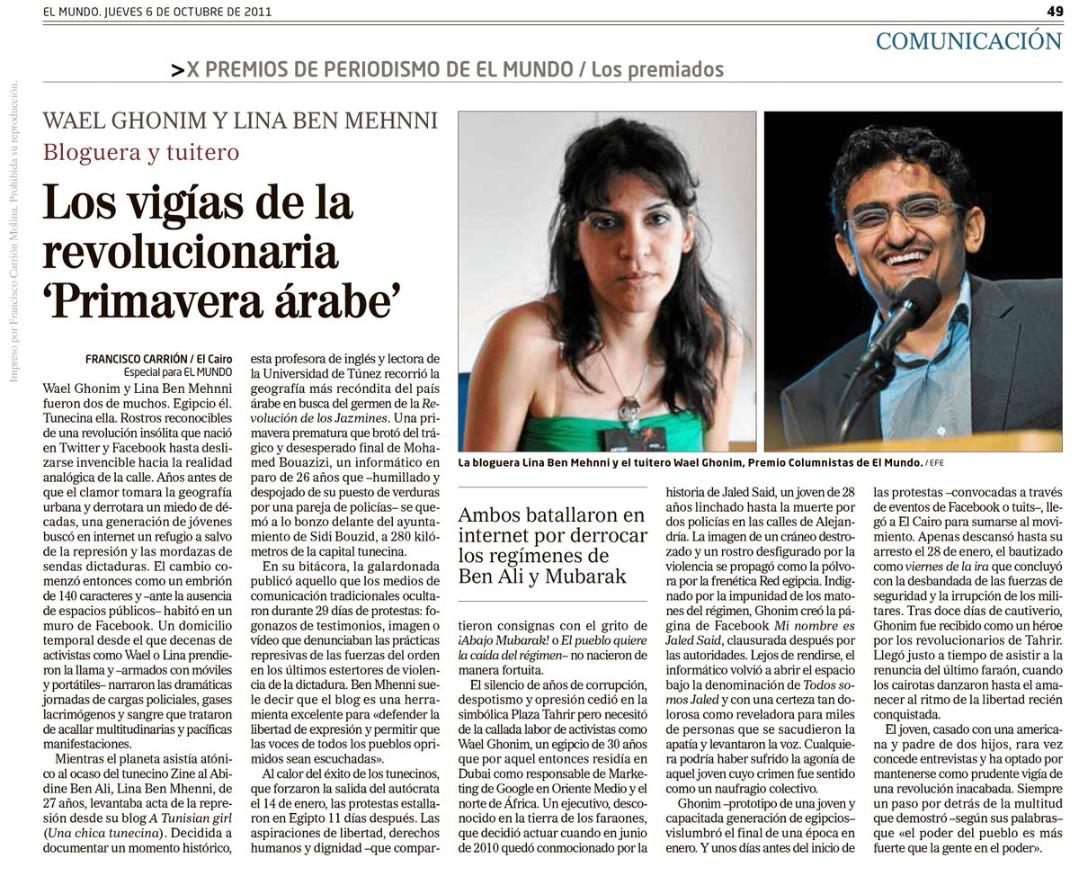 It’s surreal to see Lina Ben Mhenni and Wael Ghonim on the same page, receiving the same prize in 2011, despite their very different trajectories. https://twitter.com/fcarrionmolina/status/1221773082899177478?s=21 …https://twitter.com/fcarrionmolina/status/1221773082899177478 …