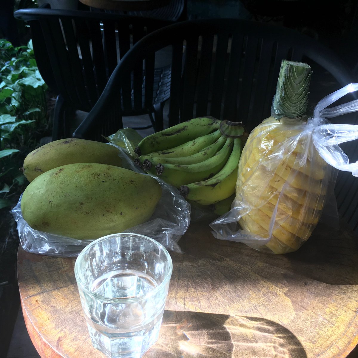 Also, the small green bananas. They are good, all local. There are many banana plantations here.