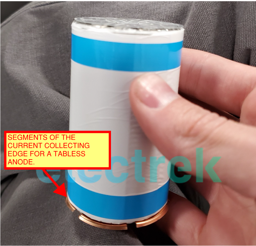 Battery cells are typically rolled around a center spindle. Zoom in close. The aluminum collector cap appears to be one single piece formed from the spindle saving steps and money.pic.twitter.com/7u0GeJEype
