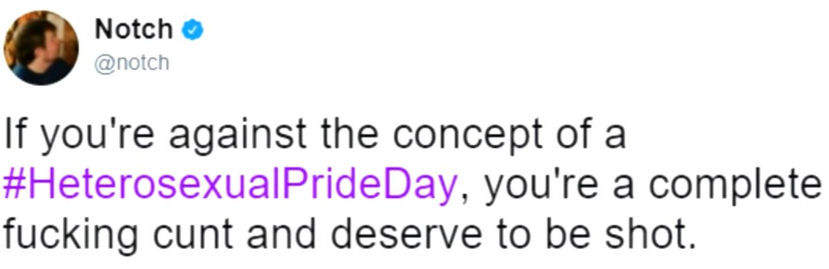 notch in 2012: almost everything in minecraft is genderless and by extent homosexual notch in 2019: if you support trans people you’re evil