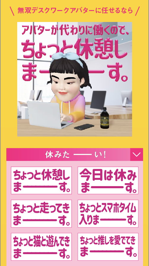 / アツさに負けず 仕事、勉強、就活を がんばるみなさーん! \ たまにはそれ、 アバターに任せてみませんか?