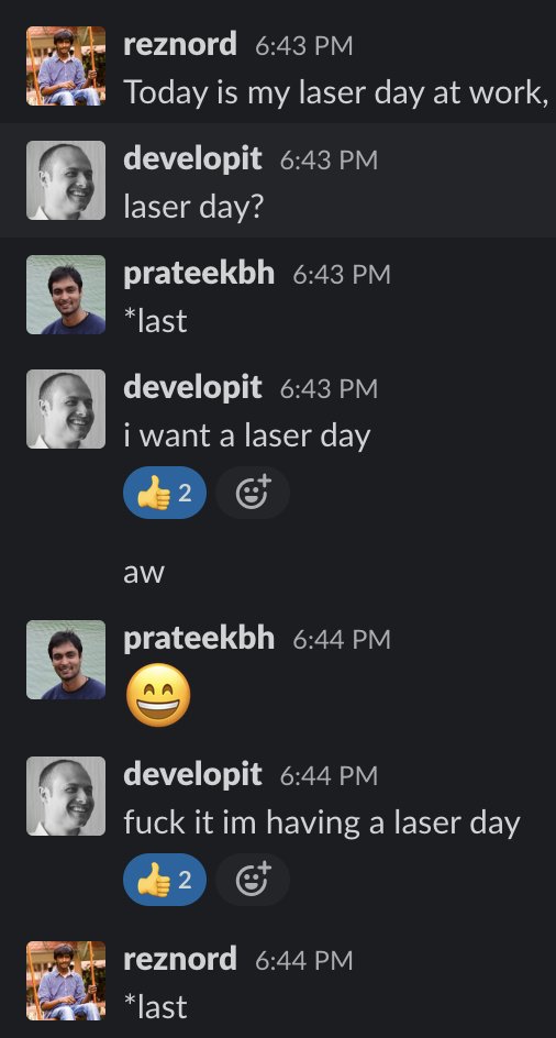 @_reznord just coined the phrase "Laser Day", and I'm going to start using it. Here's my LASER DAY approach: