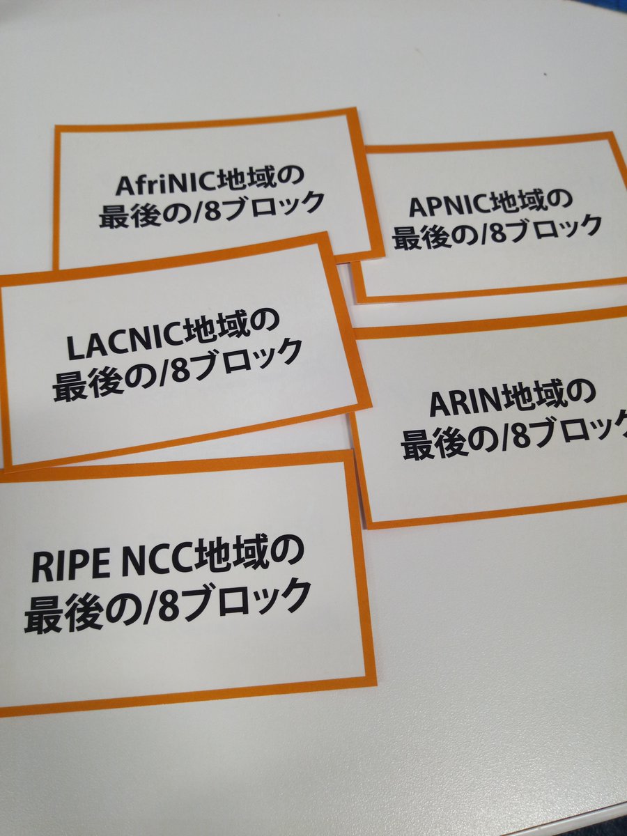janogのJPNICさんのブースでもらったIPアドレスカルタ、この業界の人なら楽勝でしょー、と思って眺めてたら鬼畜な札が紛れてた。知らねーよそんなの!pic.twitter.com/H8iIAfrnvF