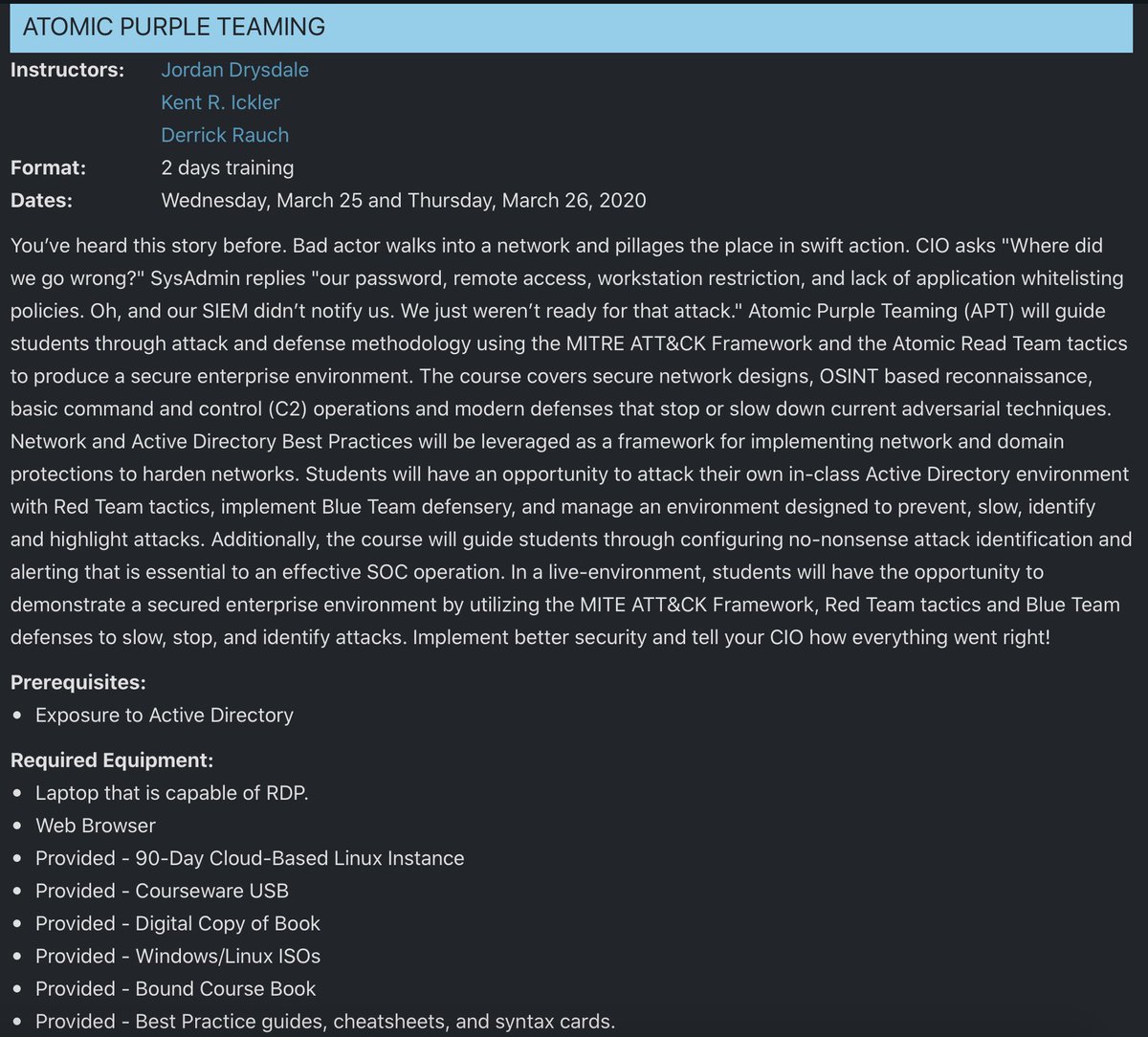 Atomic Purple Teaming with Jordan Drysdale, Kent R. Ickler, and Derrick Rauch Register: https://reg.kernelcon.org pic.twitter.com/MY53USGVaW