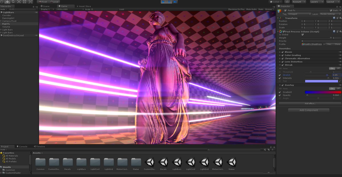 Testing custom post processing effects with HDRP. https://github.com/keijiro/Kino pic.twitter.com/yI4w0kq5IT
