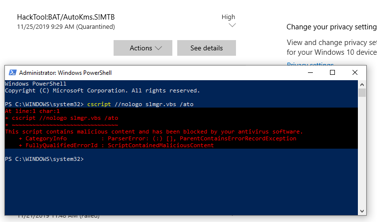 Windows Defender is treating MS's licensing script as malicious code ...