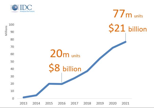 #smartwatches will ship by 2021 (CAGR 31% 2016-2021), to represent a $21 billion opportunity#Baselworld2017pic.twitter.com/ck3xHvjzJn