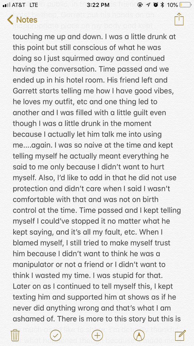 tbh it sucks this hapnd but he isnt a predator. he's just a fuck boy. I'm still going to support him as many of my friend have had positive interactions w him in the past.people need to start lookjng on both sides, he might have not seen shit as being weird. men are like that lol