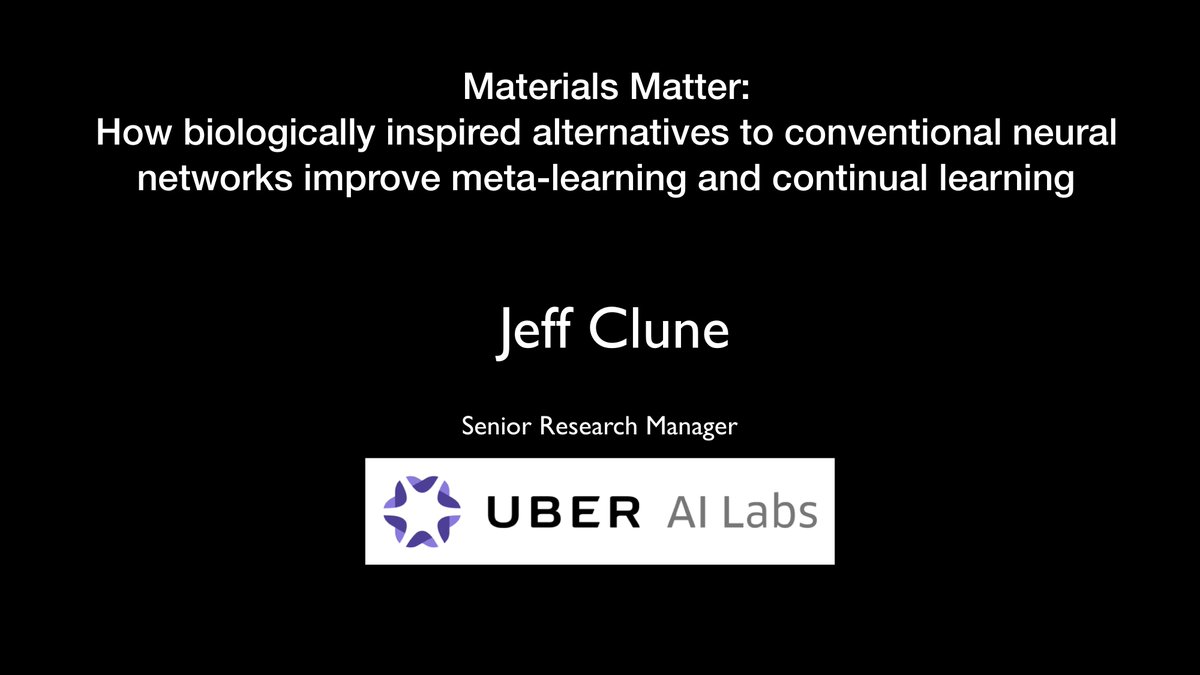 Slides for my 2nd NeurIPS talk. "Materials Matter: How biologically inspired alternatives to conventional neural networks improve meta-learning and continual learning" Covers Differentiable Plasticity & ANMML http://www.cs.uwyo.edu/~jeffclune/share/2019_12_13_NeurIPS_Biological_and_Artificial_RL.pdf …
