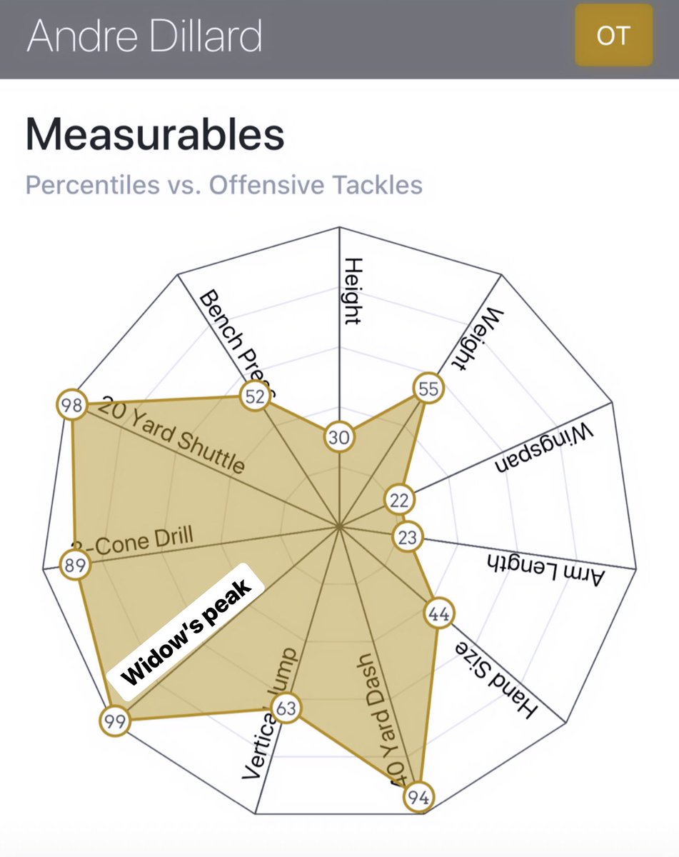 Andre Dillard has the most magnificent, severe widows peak I’ve ever seen, it’s the feat mark of a 10 year starter