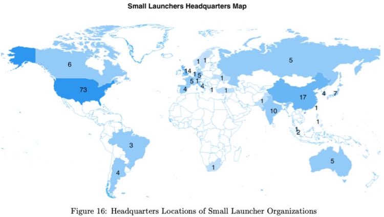 Pretty insightful report on the small launcher market! Fun fact: Out of the 180 in total, there are 73 registered companies, just in the US