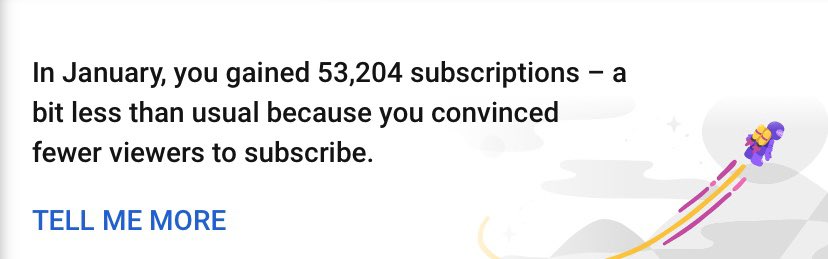 YouTube: removes exact subscriber counts to “let creators focus on telling their story, and experience less pressure about the numbers." Also YouTube: ‘less people subscribed this month because they’re choosing not to mate’pic.twitter.com/lagdqUrZu6