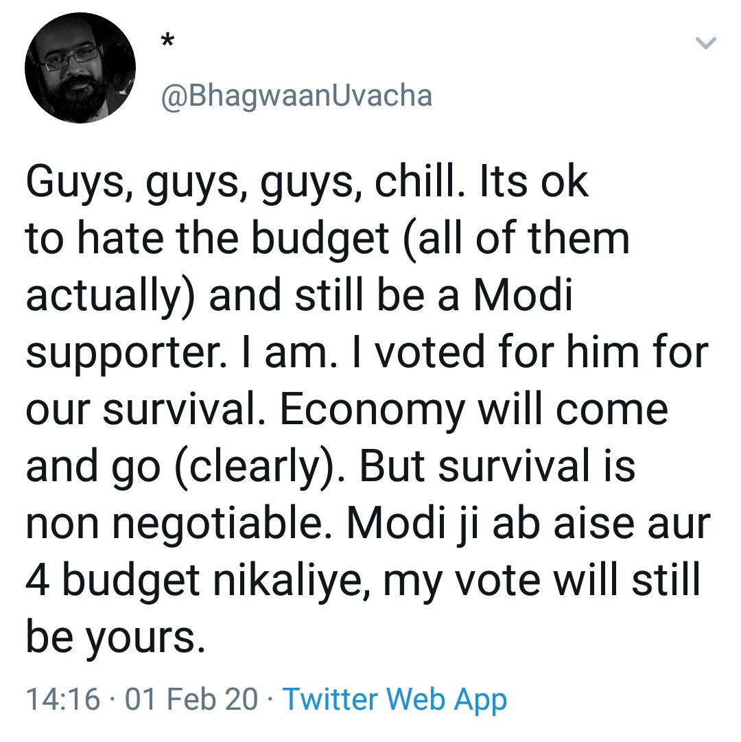 thus starts a series of weekly status updates call with FM where she'll alternatively placate and passive-aggressive clarify every other budget MASTERSTROKE because UNESCO-certified longest post-halwa eating hangover is not sufficient to summarise new policies.https://twitter.com/aruproytweets/status/1223903453748969472 …Prikaži ovu nitHvala. Twitter će to iskoristiti za poboljšanje vaše vremenske crte. PoništiPoništi -