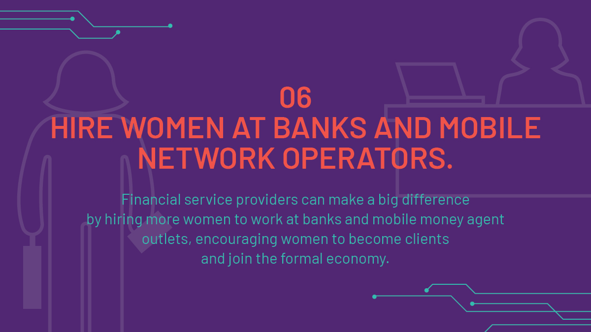 #women at banks & mobile network operators. Evidence suggests that women use financial services more often when they are served by female bank employees & mobile money agents.#financialinclusion#digitalpayments#SDG5 Our#10Actions4Equality: https://bit.ly/2MMdrWS pic.twitter.com/KKW6qxclax
