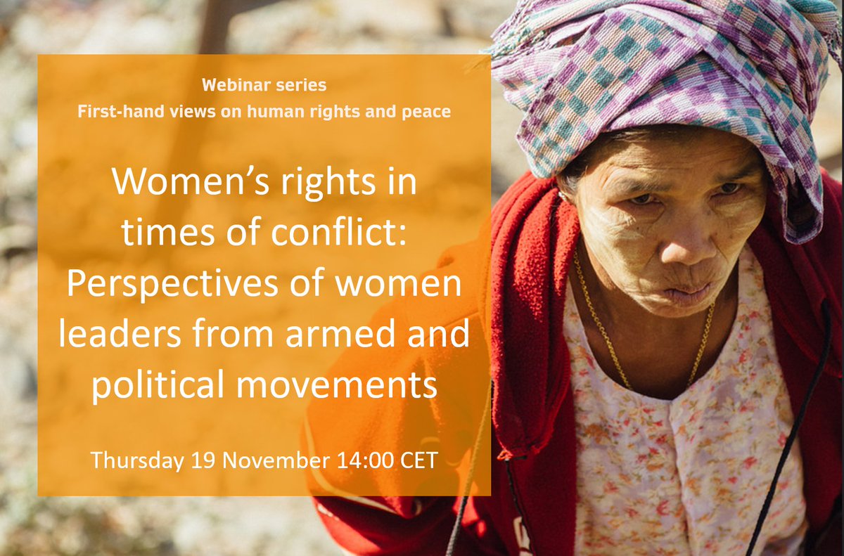 Join us on 19 Nov 14:00 CET for our webinar on #womenrights in times of conflict, co-organized with the @BerghofFnd. We'll hear from women leaders from the STC (Yemen), the FARC (Colombia), KNU (Myanmar) and Kongra Star (NE Syria)#WPSin2020 #UNSCR1325 https://bit.ly/3lfgKSf  pic.twitter.com/nlyqxhd82v