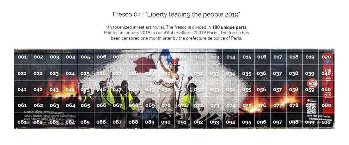 Each NFT is a unique part of the whole piece. Aquisition price is 0.5 eth. Link to see all the tokenized murals: