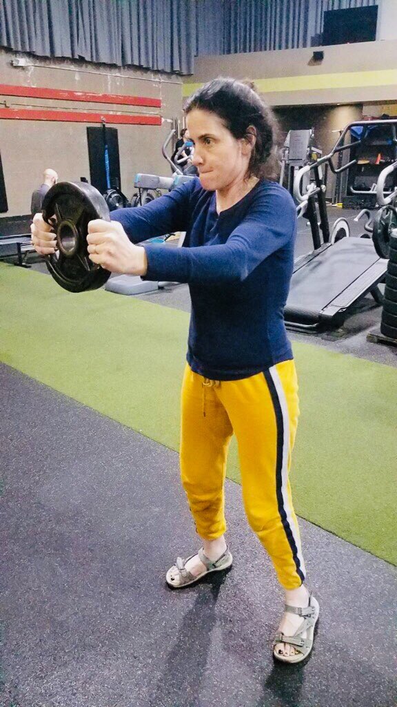 today, i finished my first week of training EIGHT hours with coach. this moment yesterday, though it looks small, and will probably not get me married off, haha. was HUGE. holding the weight and moving it is a VERY BIG DEAL. for processing, balance, core.. what cerebral palsy?pic.twitter.com/4BWNBpNbCx