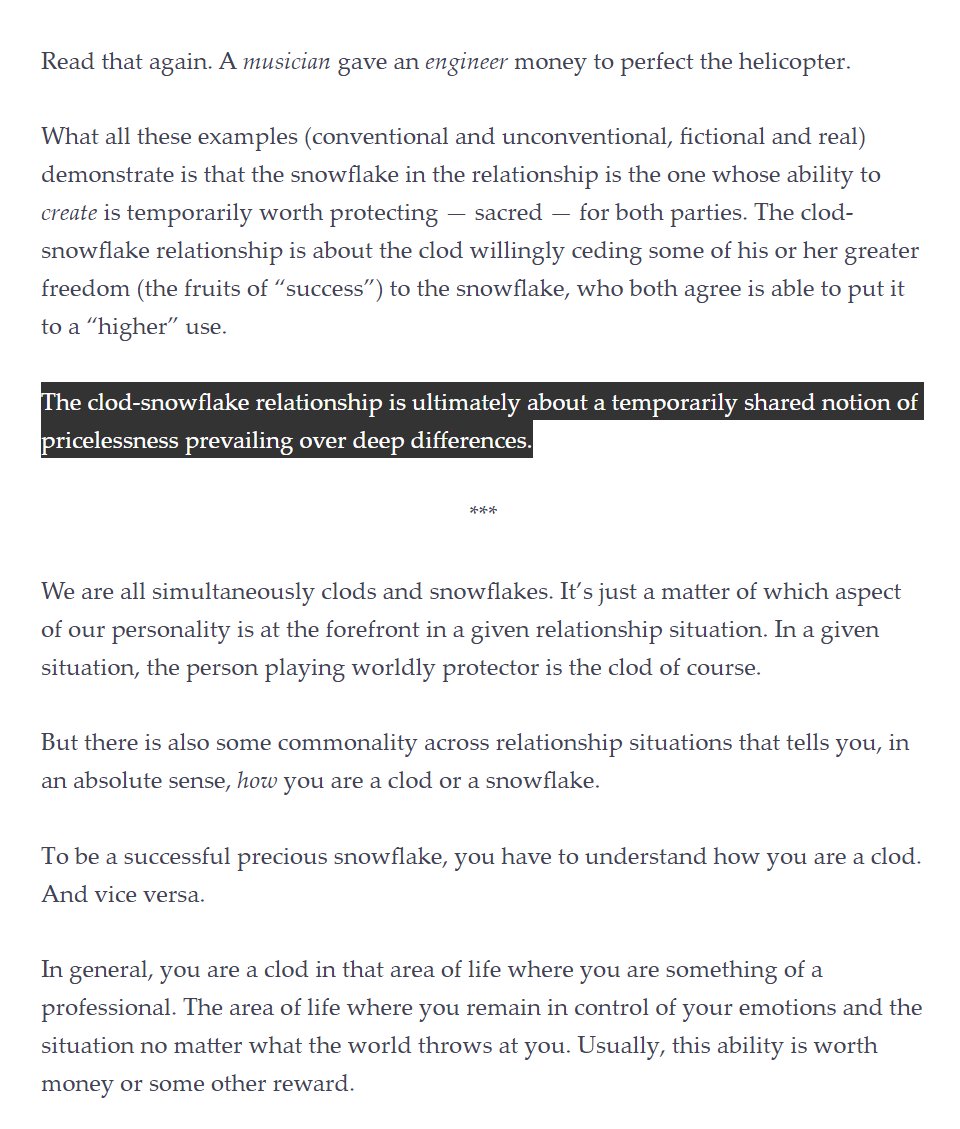 "The clod-snowflake relationship is ultimately about a temporarily shared notion of pricelessness prevailing over deep differences." https://www.ribbonfarm.com/2015/09/17/how-to-be-a-precious-snowflake/ …pic.twitter.com/WYdiFWndHy