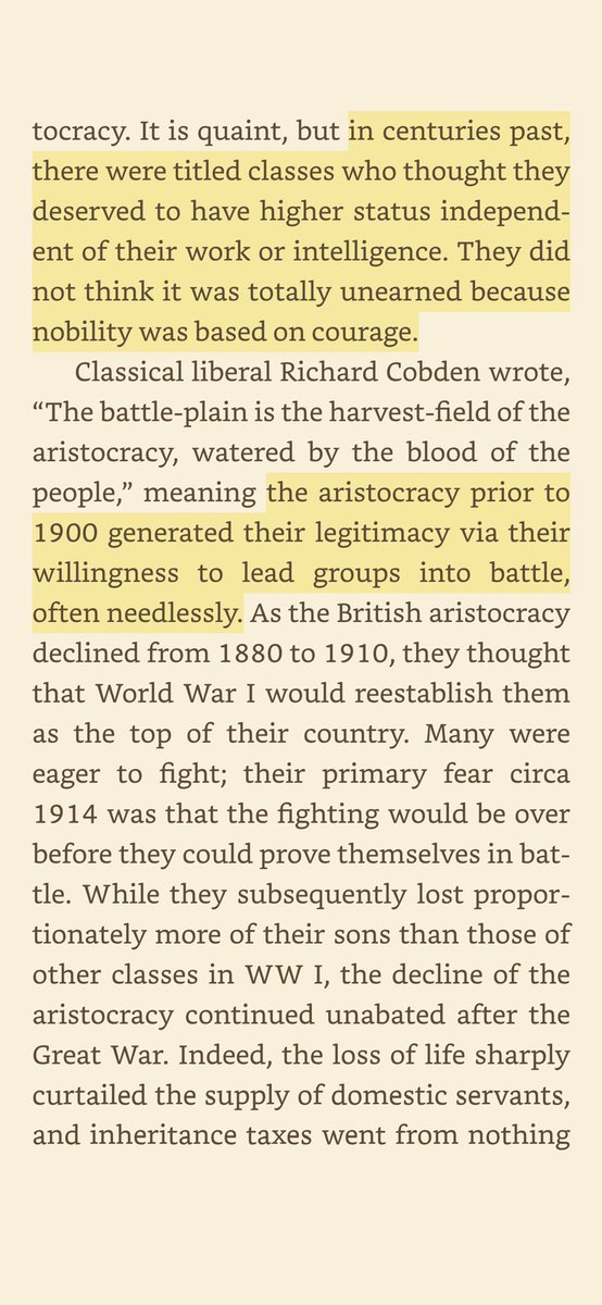 it is interesting to note that by eliminating the concept of nobility you can also eliminate the pressures that generate courage.
