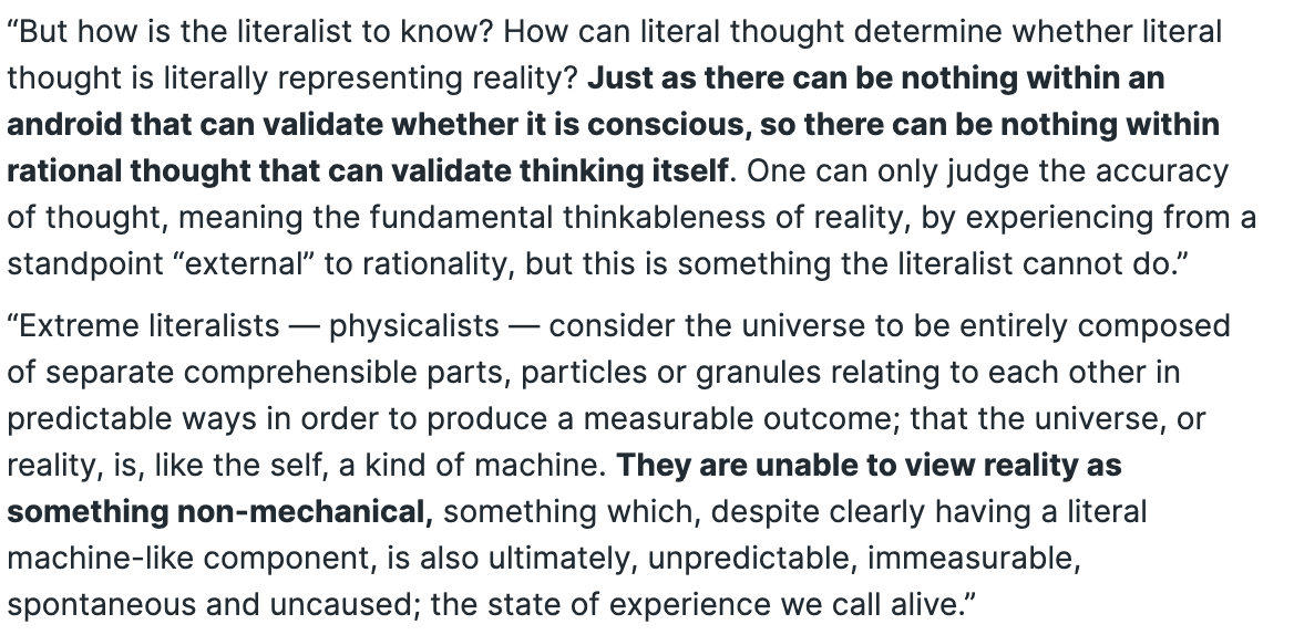 > Just as there can be nothing within an android that can validate whether it is conscious, so there can be nothing within rational thought that can validate thinking itselfpic.twitter.com/KpVYn0I0Rl