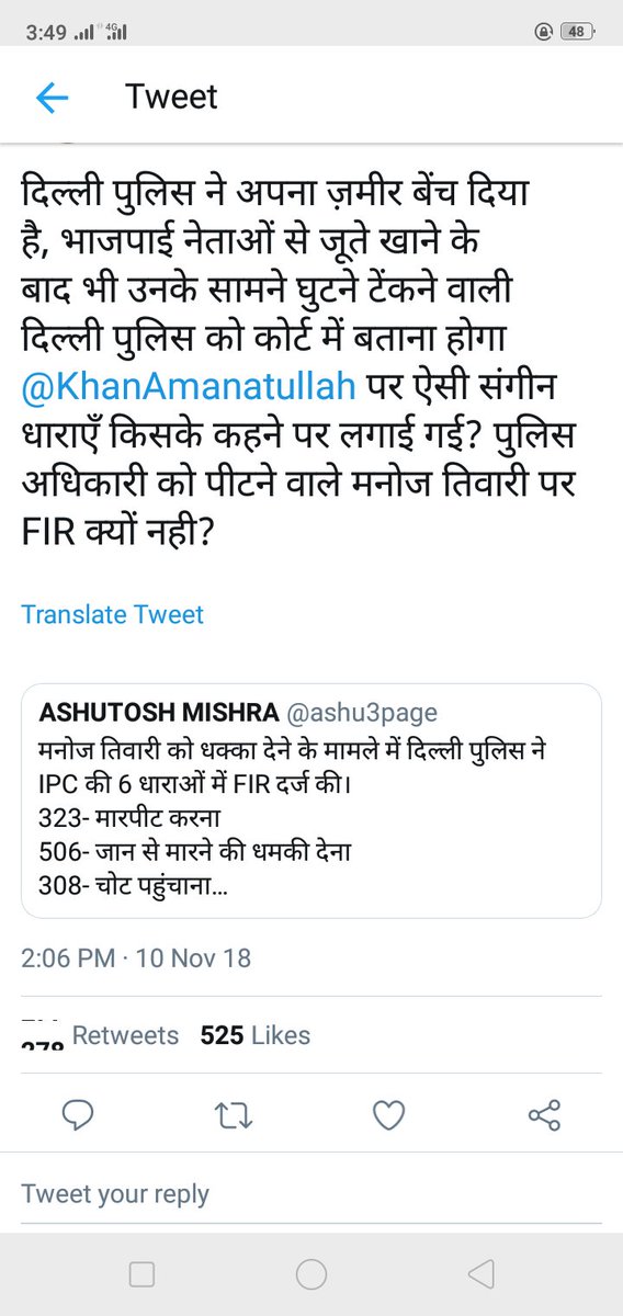 अमानतउल्लाह खान मनोज तिवारी को धक्का