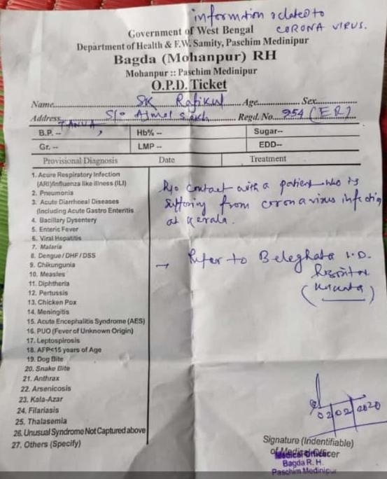 পশ্চিম মেদিনীপুরের মোহনপুর ব্লকের তনুয়ার বাসিন্দা শেখ রফিকুল কর্মসূত্রে কেরালায় এক করোনা ভাইরাস আক্রান্তের সঙ্গে ছিলেন । তার দেহে ভাইরাস সংক্রমণ হয়েছে কিনা দেখার জন্য বেলেঘাটা আইডি হাসপাতালে পাঠানো হয়েছে। সিএমওএইচ জানিয়েছেন দেহে কোনো উপসর্গ নেই ।pic.twitter.com/tBw40gAe6e