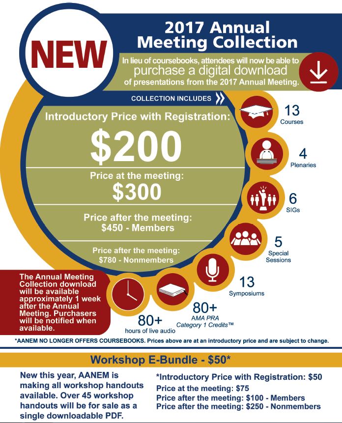 New to AANEM Annual Meeting is digital downloads of the sessions. For more information: http://ow.ly/kZM130cEhM2