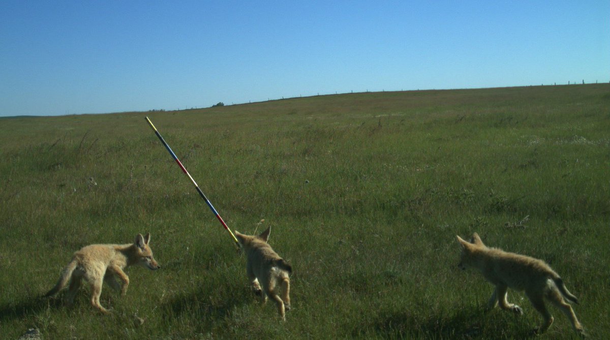 These coyote pups sure are having fun with our "wizard stick!" Any clue why it's in all of our