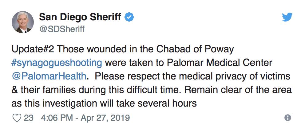 NEW: Poway Mayor Steve Vaus on the Chabod of Poway shooting: "Hate has no place in ANY community... least of all Poway. We will put our arms around each other and walk through this tragedy as the family we have always been and always will be." http://abcn.ws/2ZCbwpf pic.twitter.com/YKUPQN5pJJ