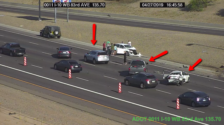 I-10 EB: A crash is blocking the right two lanes at 83rd Avenue.