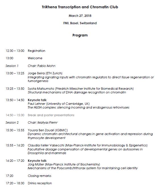 #Transcription &#Chromatin meeting. Looking forward to welcoming participants from@FMIscience,@mpi_ie,@IGBMC,@Novartis,@TheCIMR,@UZH_Science,@biozentrum,@ETH_en and@DKFZ.pic.twitter.com/RldJcp7dmc