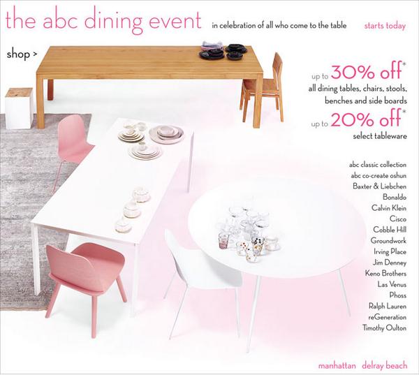 Our abc dining #sale begins today! Discover up to 30% off select dining furniture & tableware http://www.abchome.com/shop/furniture/dining …pic.twitter.com/kIBBA9qKjZ