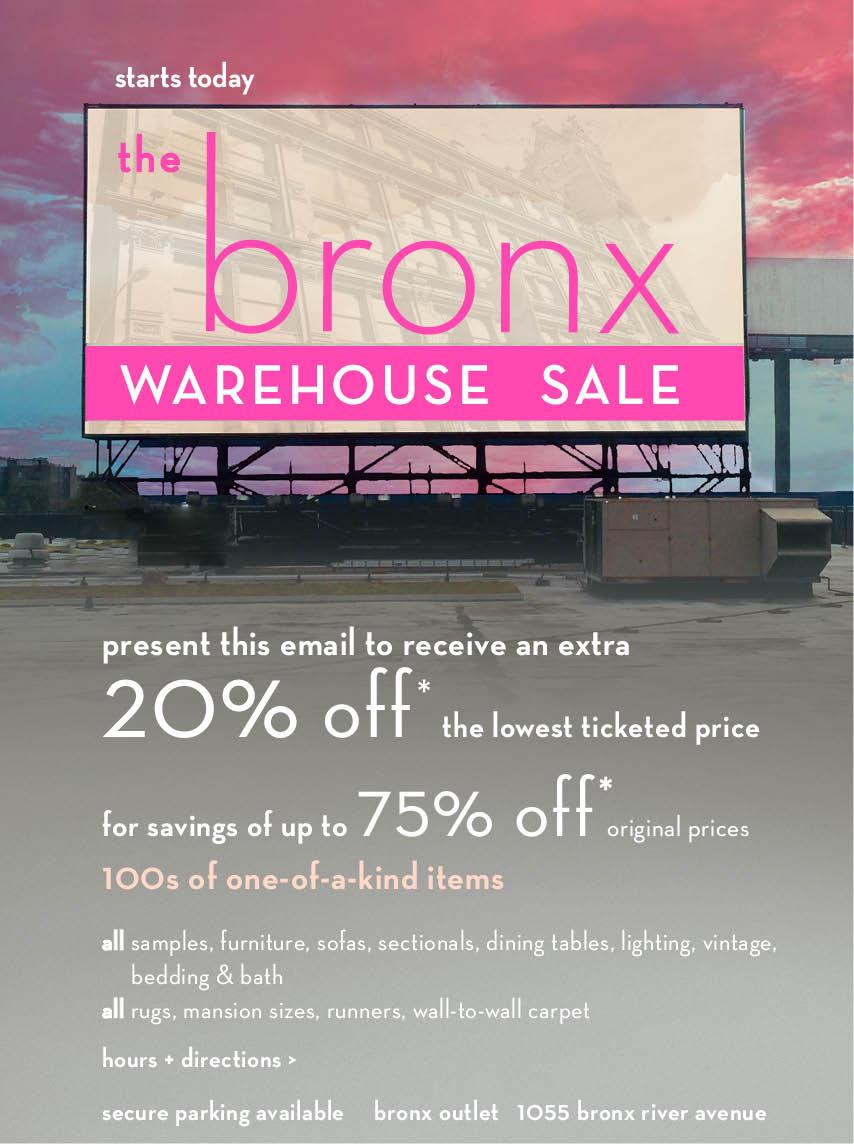 It's the FINAL DAYS of our #Bronx Warehouse Sale. Don't miss up to 75% off original prices...pic.twitter.com/baNJz5Ihir