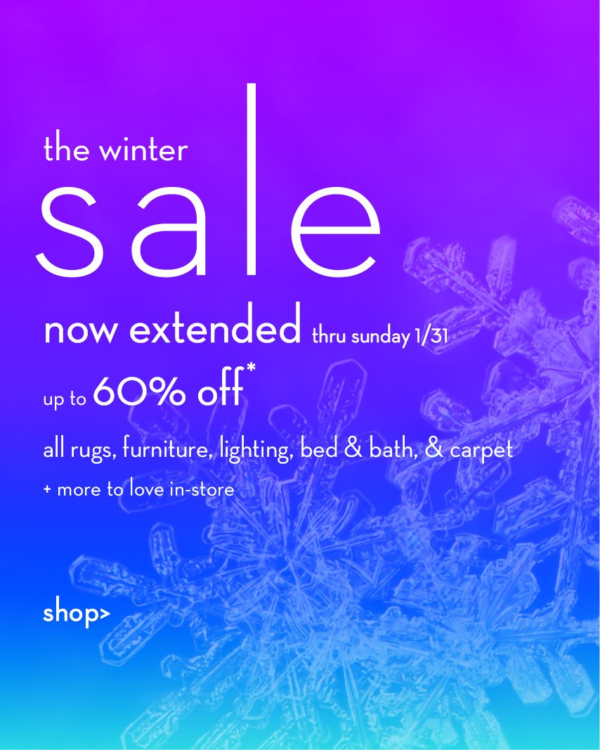 the winter sale: now extended thru sunday 1/31. extra 20% off all sale rugs & free shipping http://bit.ly/20oYPbx pic.twitter.com/N3P8GgIxvm