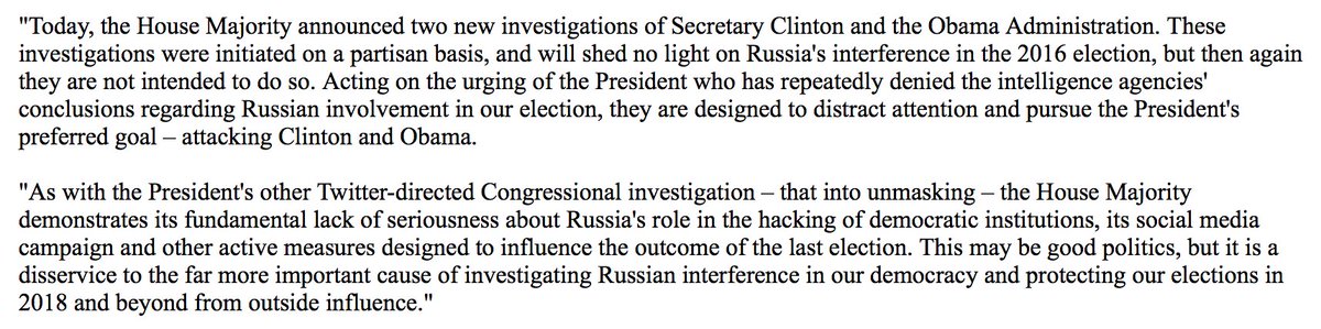 NEW: @RepAdamSchiff: New probes "designed to distract attention and pursue the President's preferred goal—attacking Clinton and Obama."pic.twitter.com/TFkgao42xh